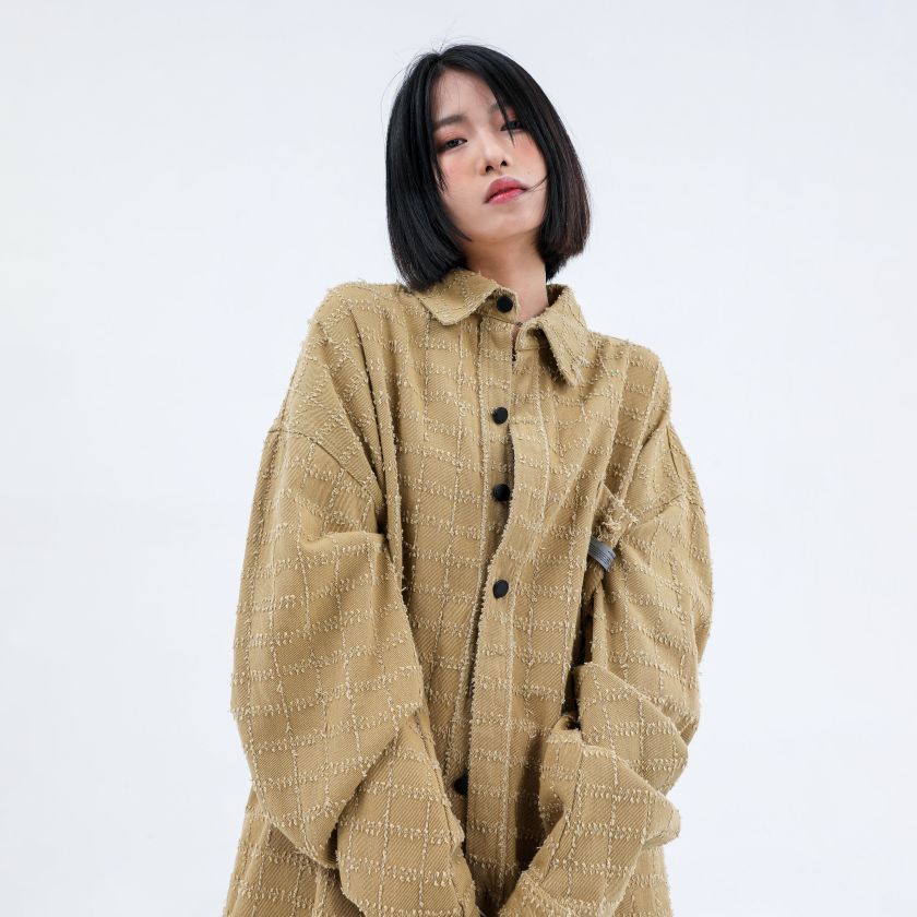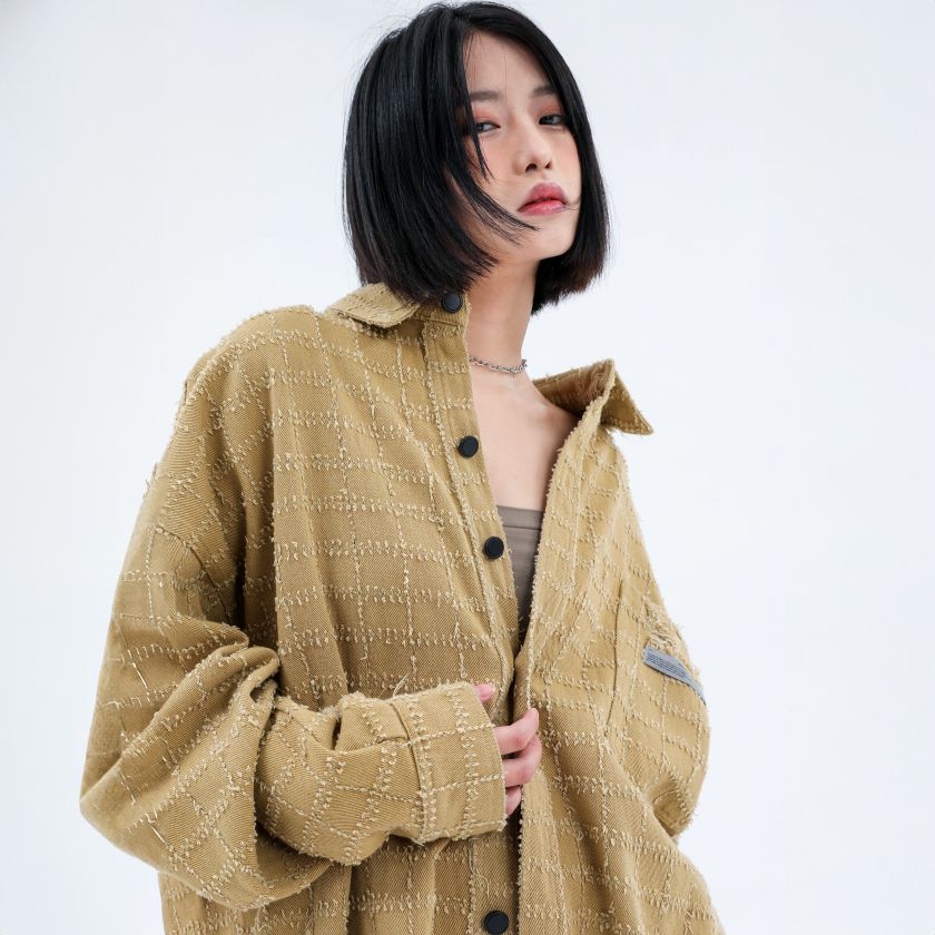 Oversized Distressed Button Down Shirt