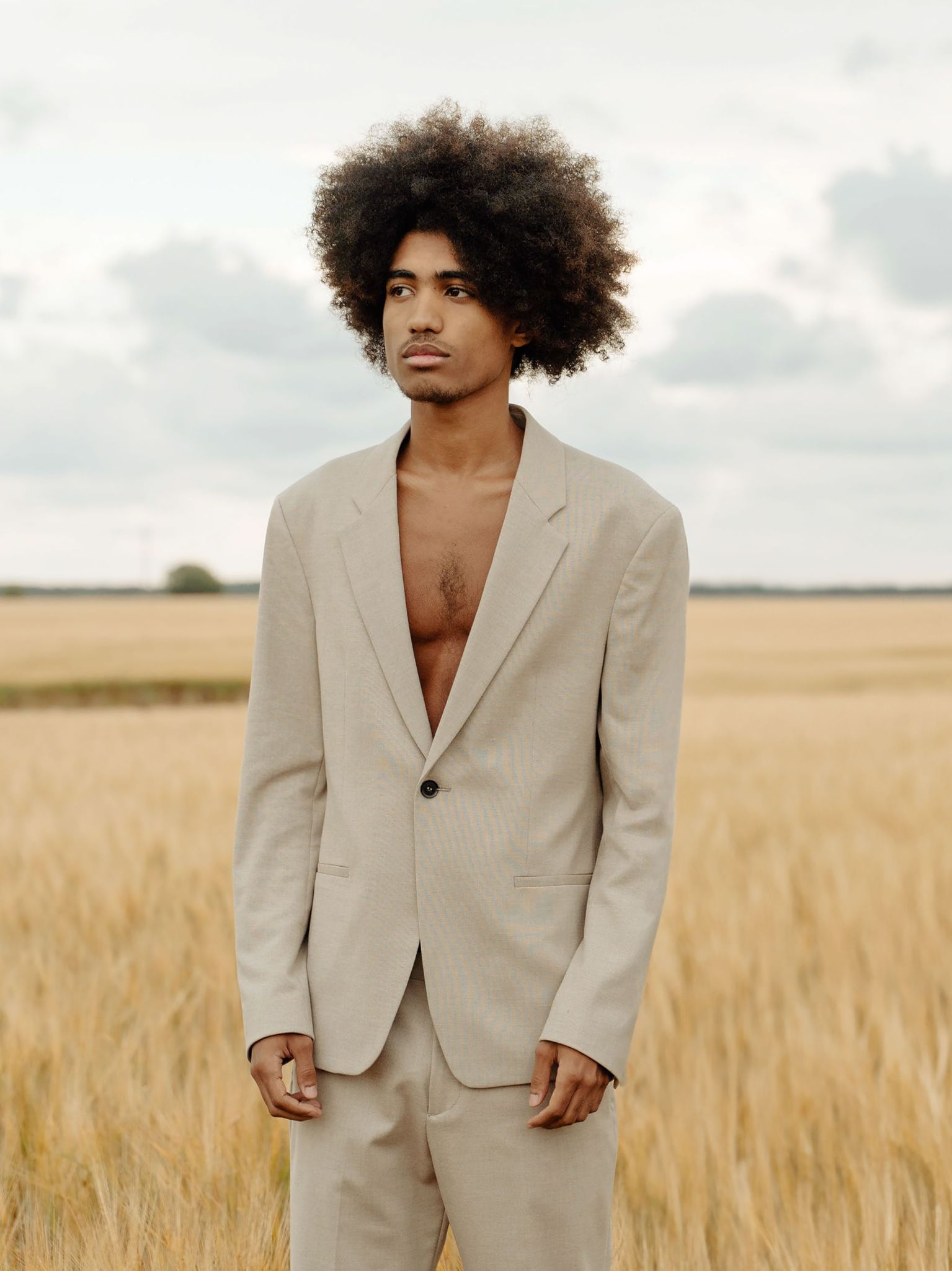 Beige Cotton Suit Jacket